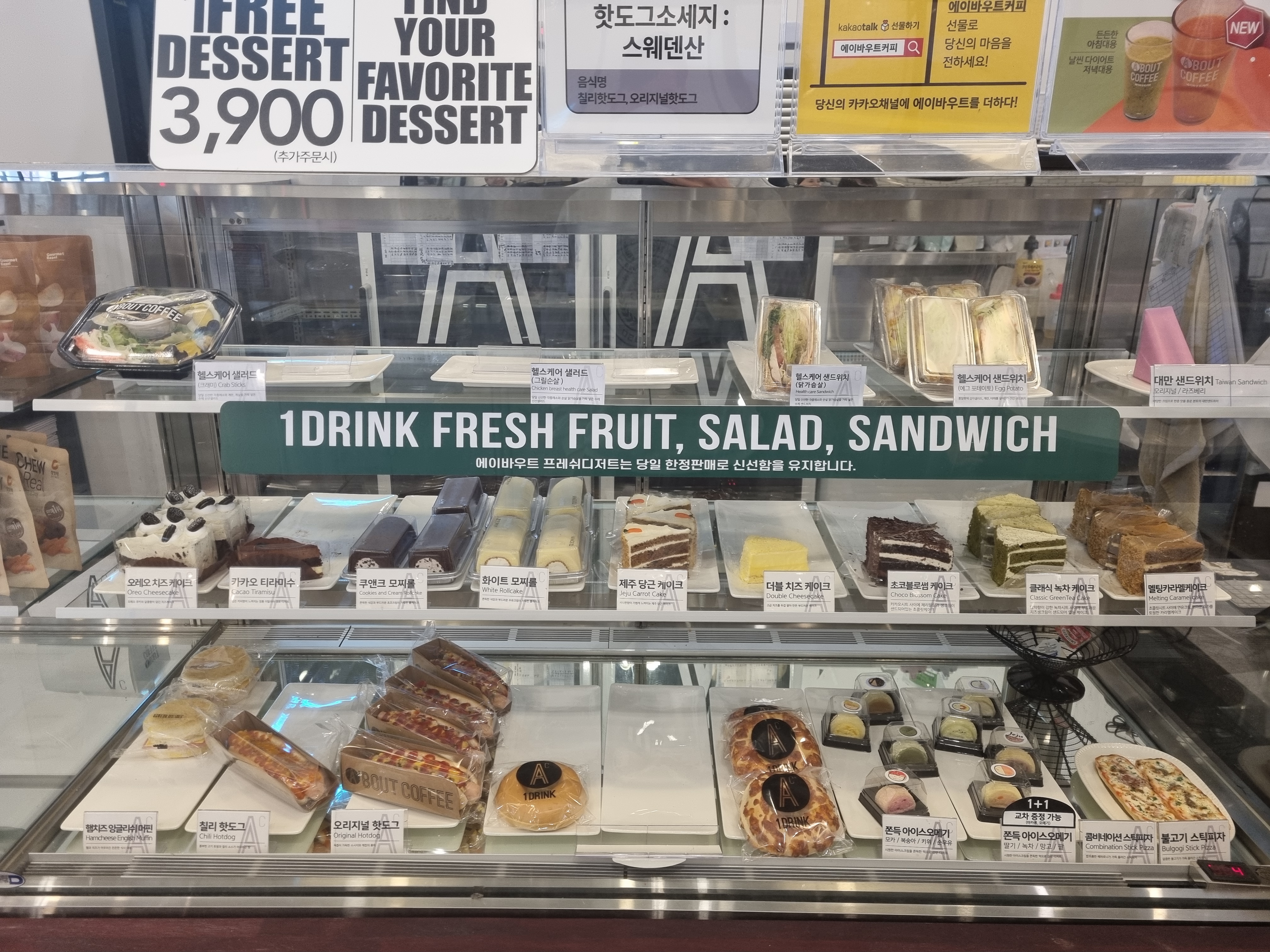 에이바우트의 가장큰매력인 음료1개당 보이는 디저트중한개를 무료로 준다는점인데요