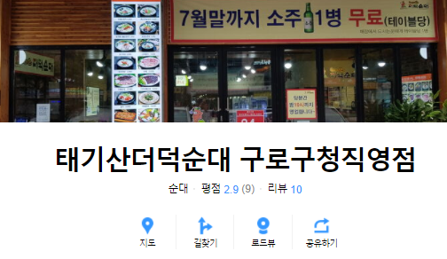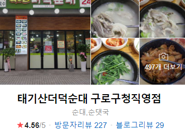 오늘 소개해드릴곳은 구로구청근처에 있는 태기산더덕순대국입니다.